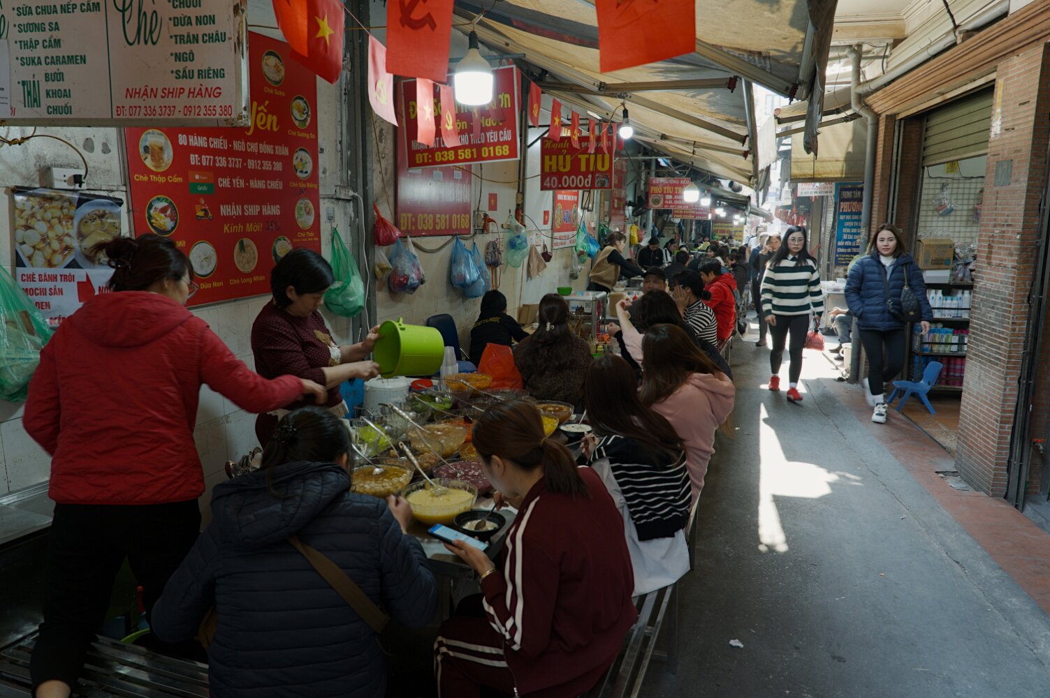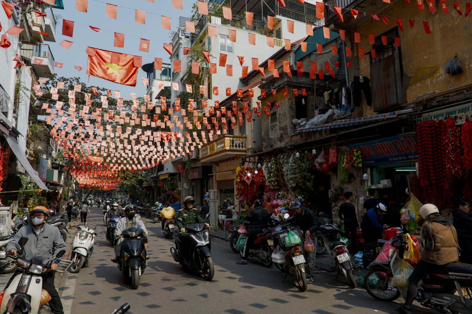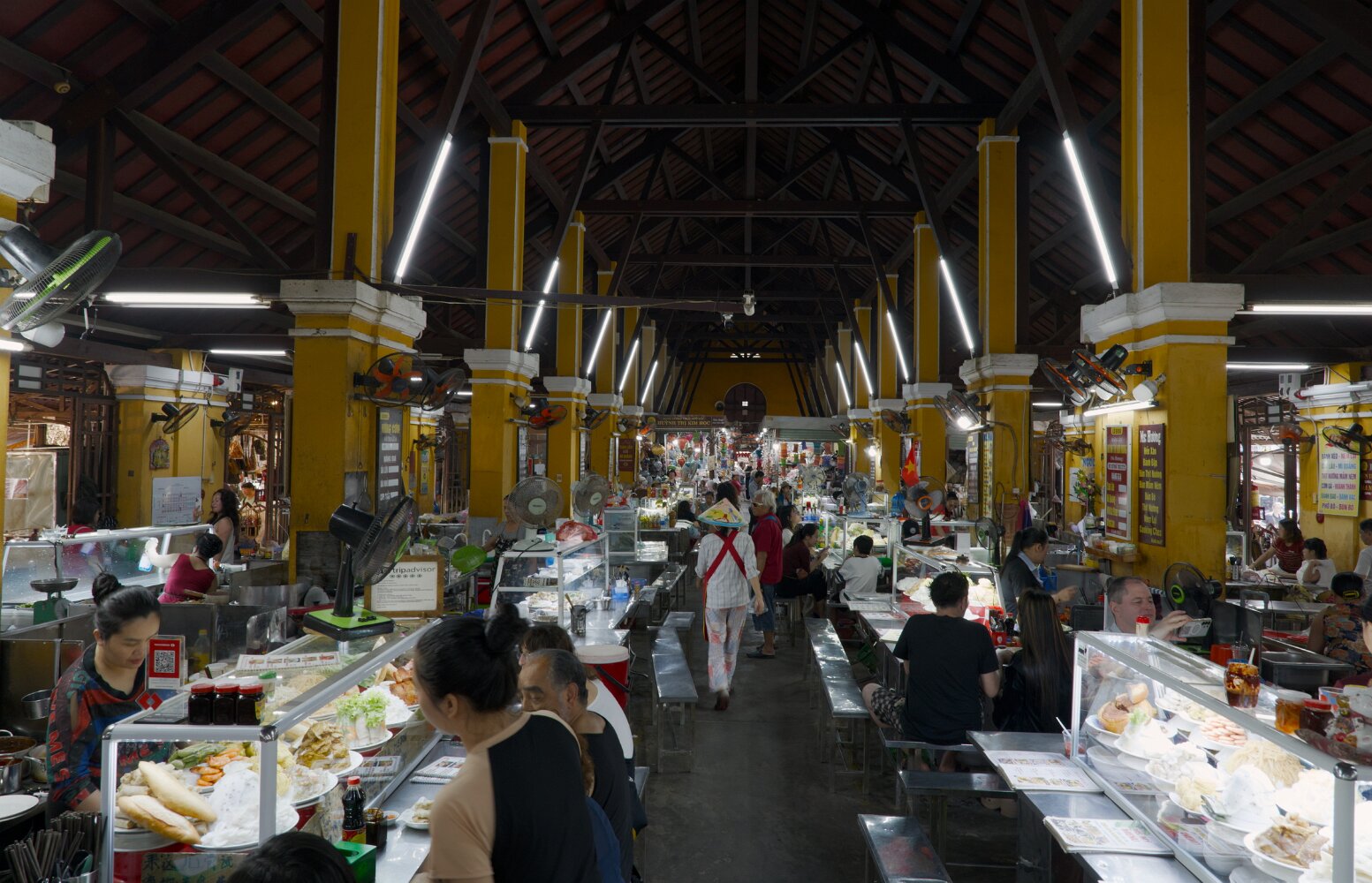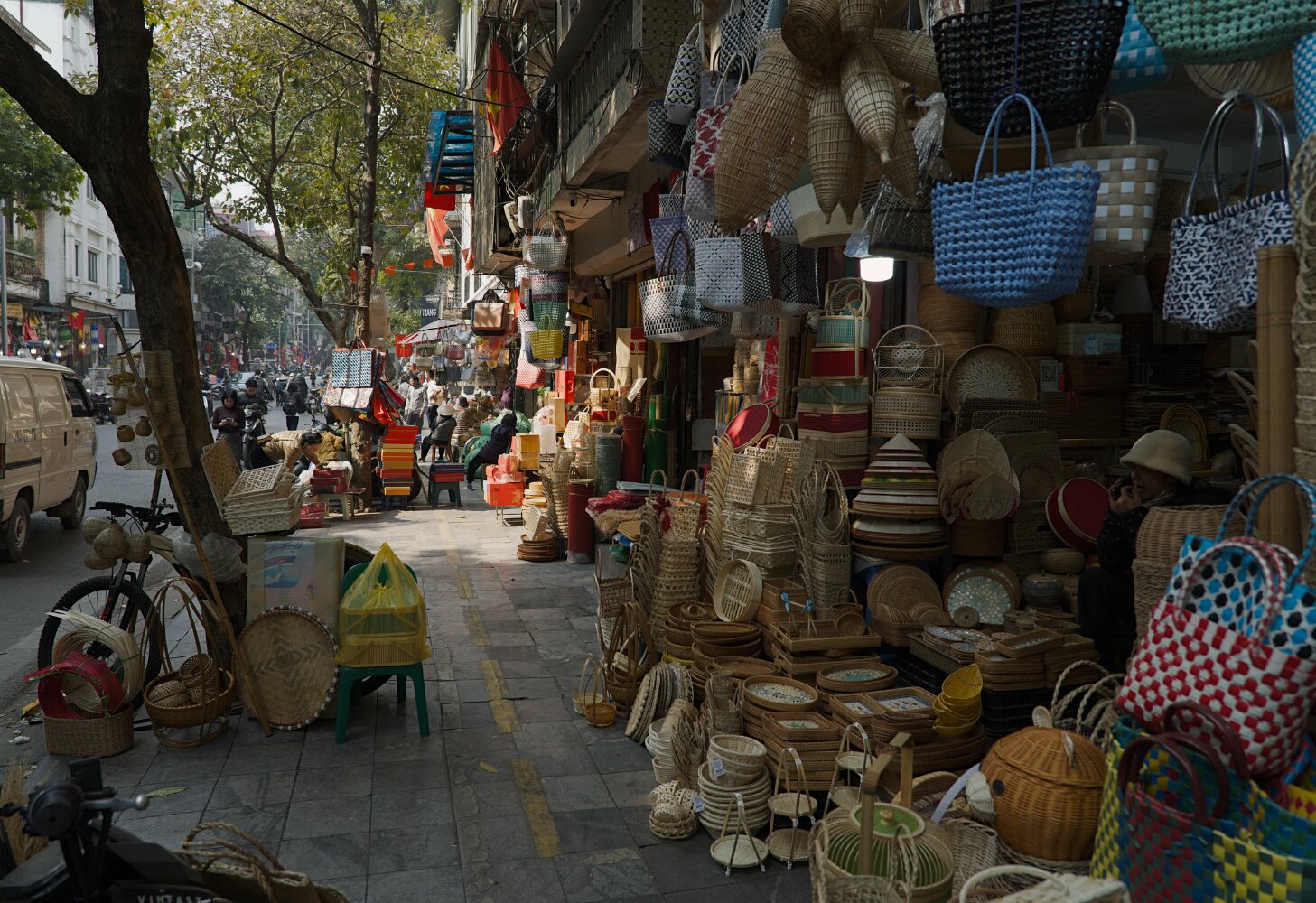 Bustling, hectic, busy, colorful, the old quarter will overwhelm all your senses. Traffic (mostly motorbikes) is mesmerizing in its chaos. Somehow, though, with no apparent rules, it just flows. There's a lot of honking, but no rage: drivers just want to announce themselves. Crossing a street with five lanes of motorbikes coming continuously is not for the faint of heart. The advice is: be decisive, don't hesitate, and don't try to dodge the upcoming traffic: let them dodge you. Or just follow a dog; they know. And, unlike Taipei, there are many.