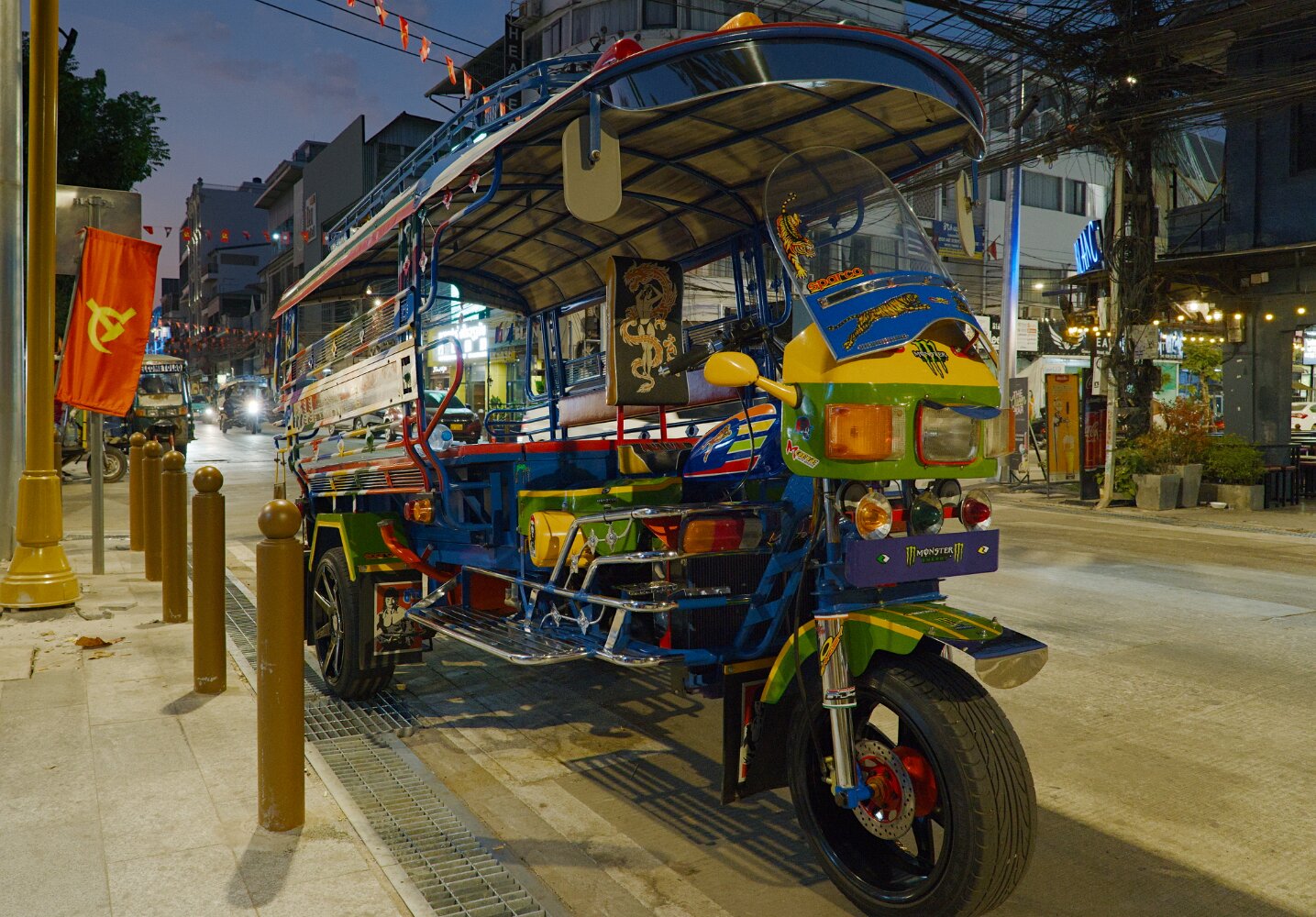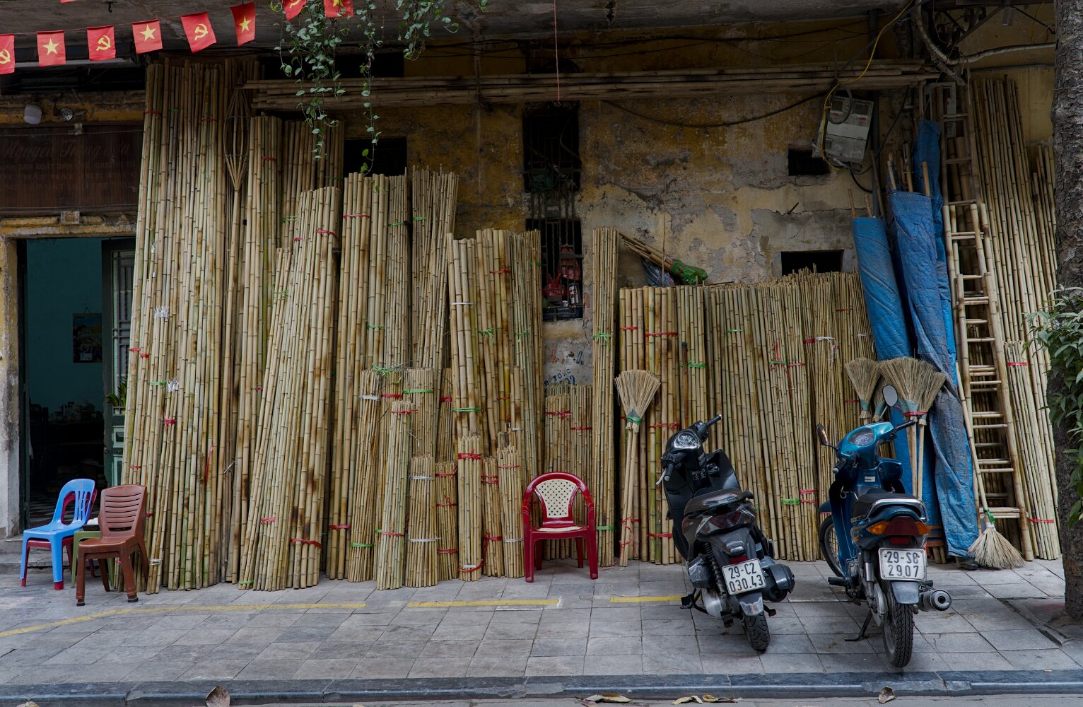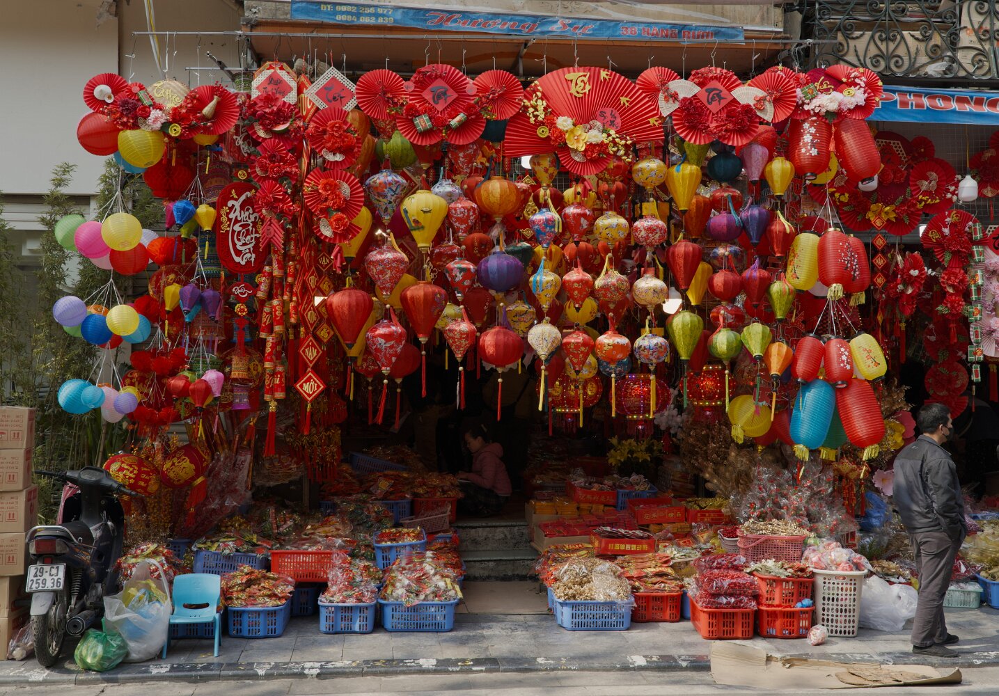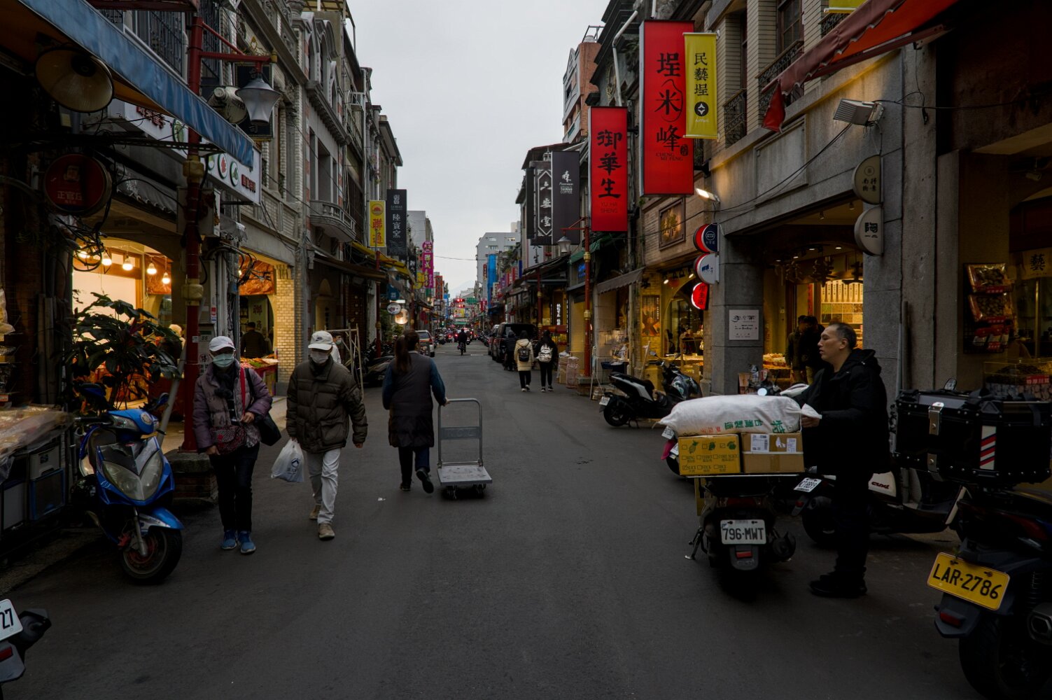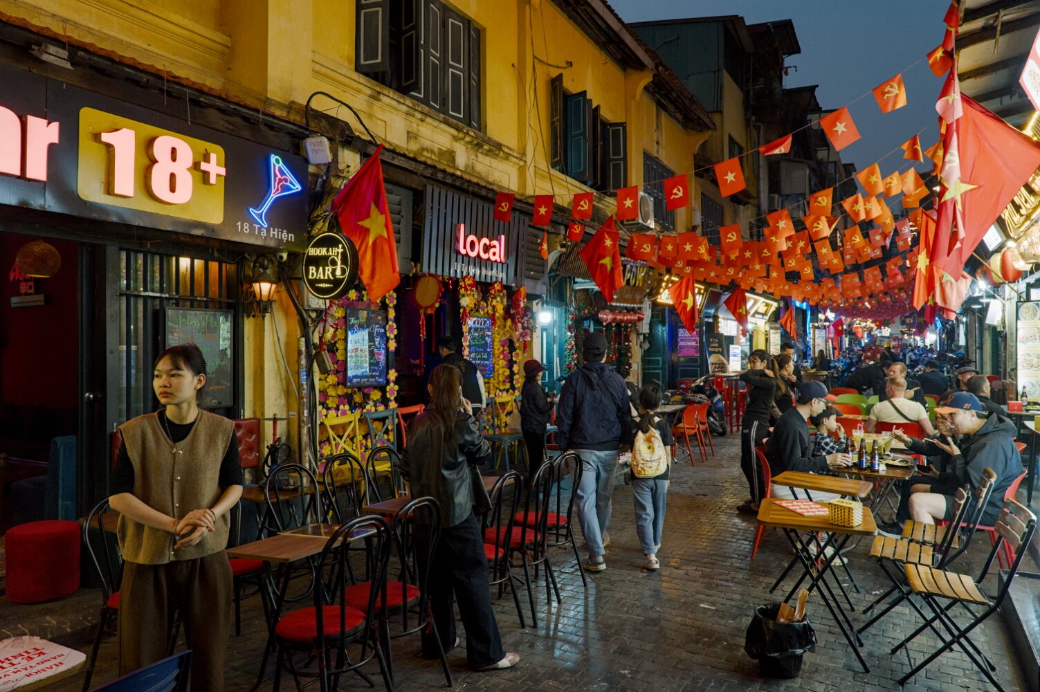 Bustling, hectic, busy, colorful, the old quarter will overwhelm all your senses. Traffic (mostly motorbikes) is mesmerizing in its chaos. Somehow, though, with no apparent rules, it just flows. There's a lot of honking, but no rage: drivers just want to announce themselves. Crossing a street with five lanes of motorbikes coming continuously is not for the faint of heart. The advice is: be decisive, don't hesitate, and don't try to dodge the upcoming traffic: let them dodge you. Or just follow a dog; they know. And, unlike Taipei, there are many.