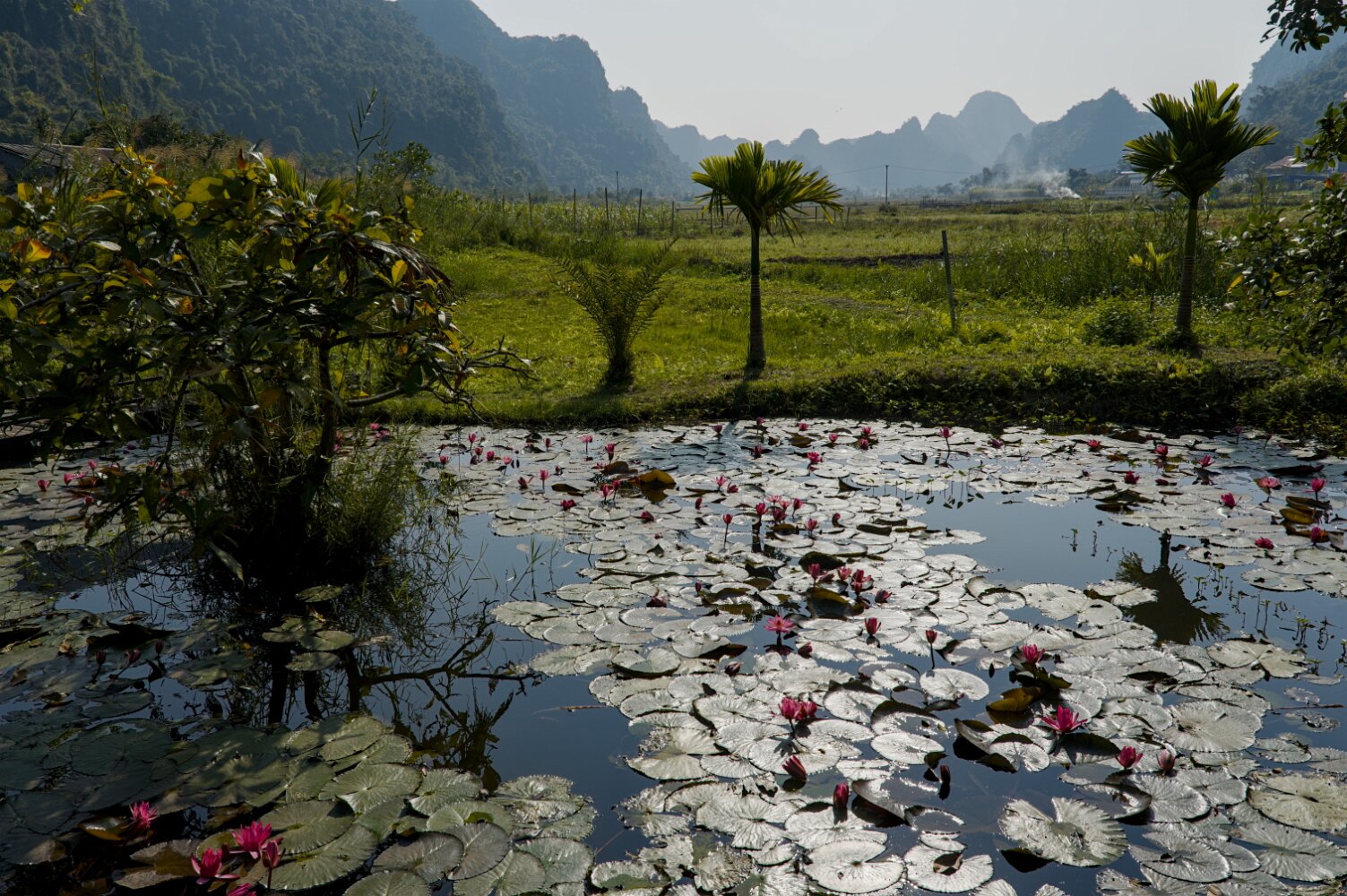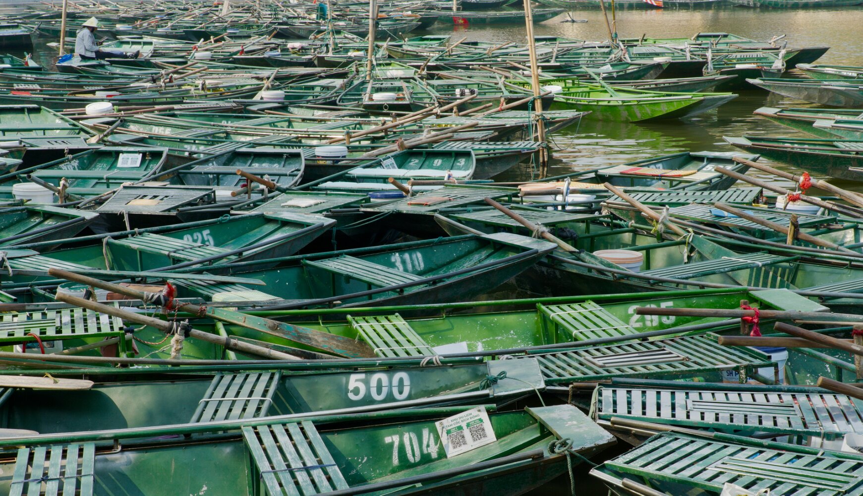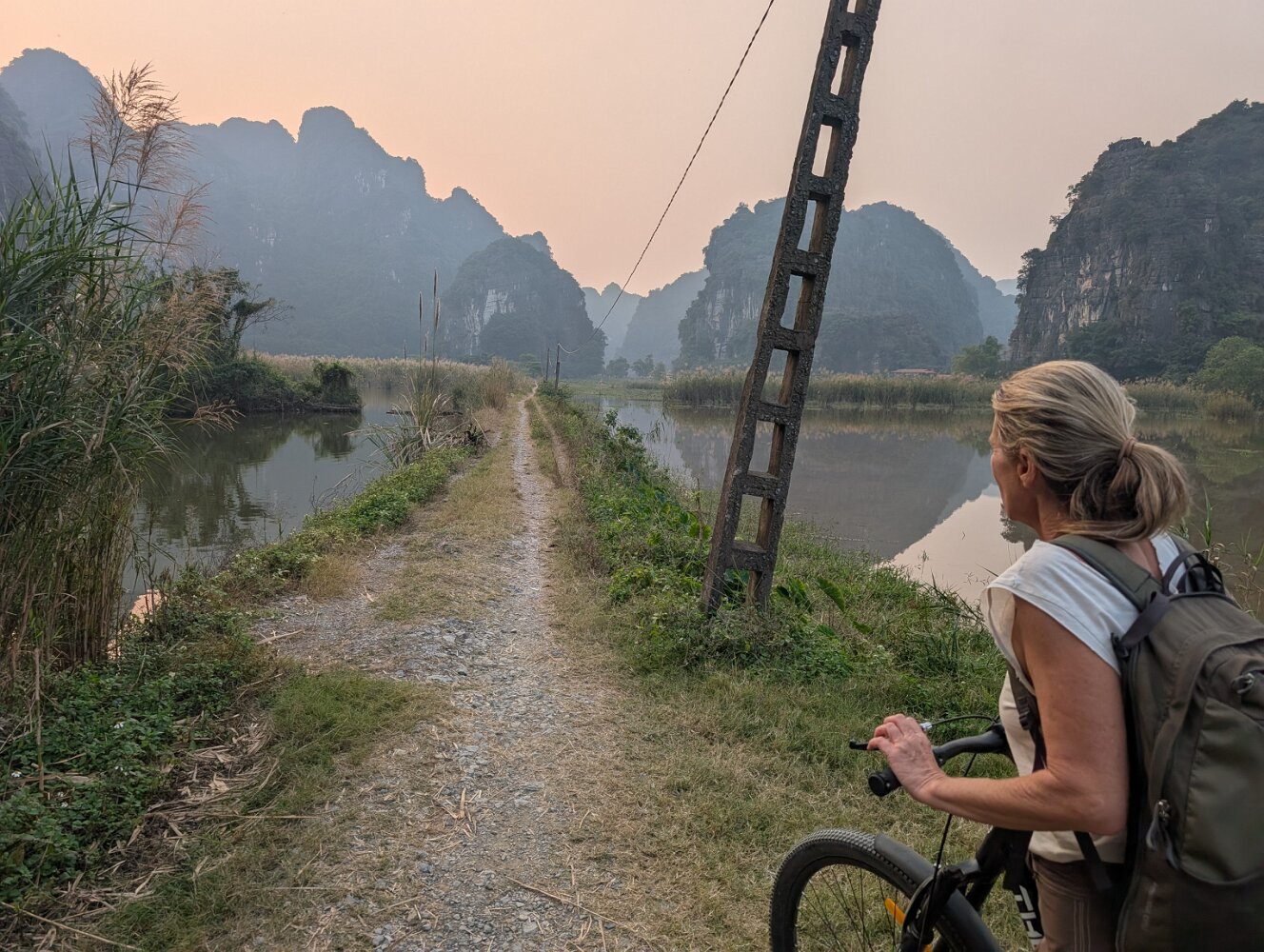 After a long bus ride from Cai Beo, we settled in our placid "Mountain Side Bungalow", strategically located between the towns of Tam Coc and Trang An, and just a short bicycle ride from twin-peaked Ngoa Long Mountain. A rowboat tour with a charming local through wetlands and kilometer-long caves was a highlight. The bad air (persistent throughout all our Northern Vietnam experience) was a low point.Hoi An