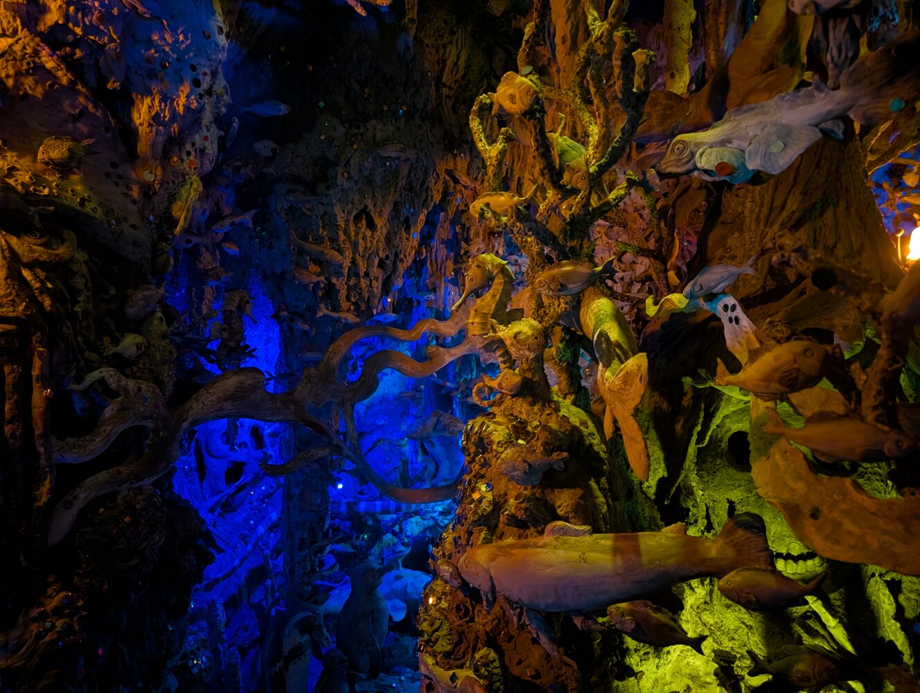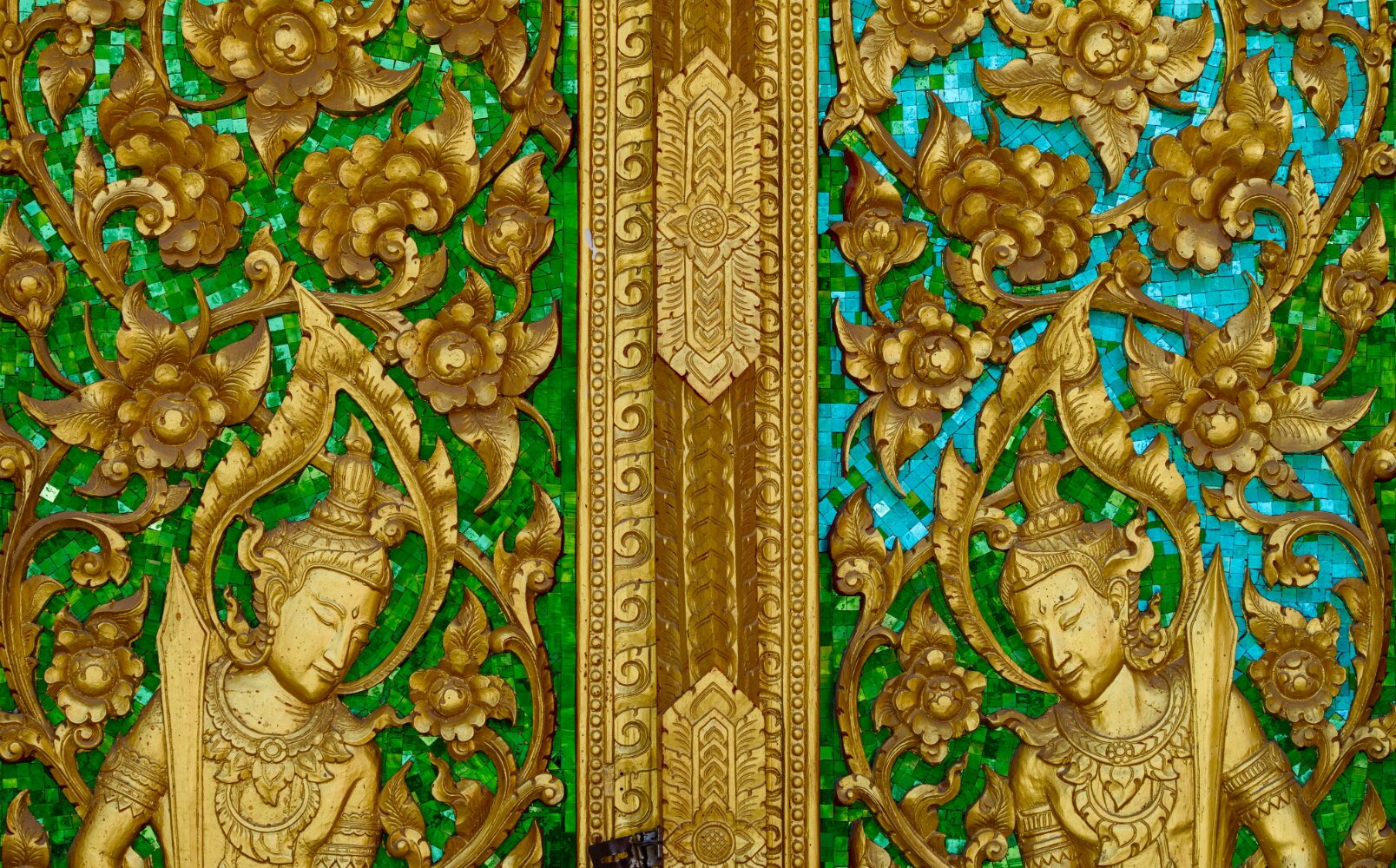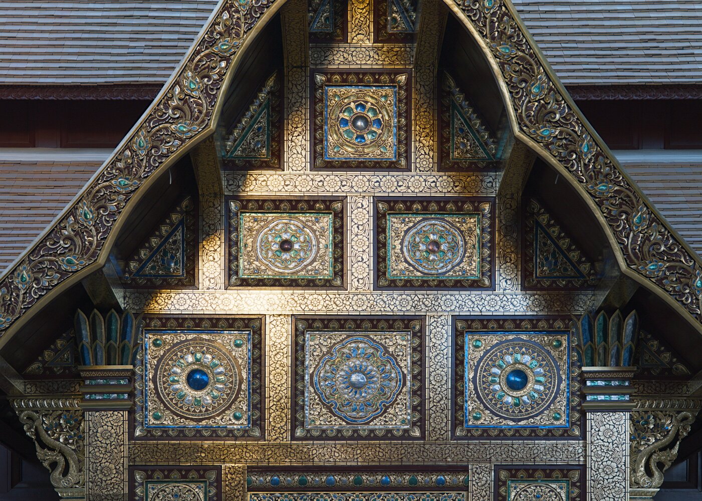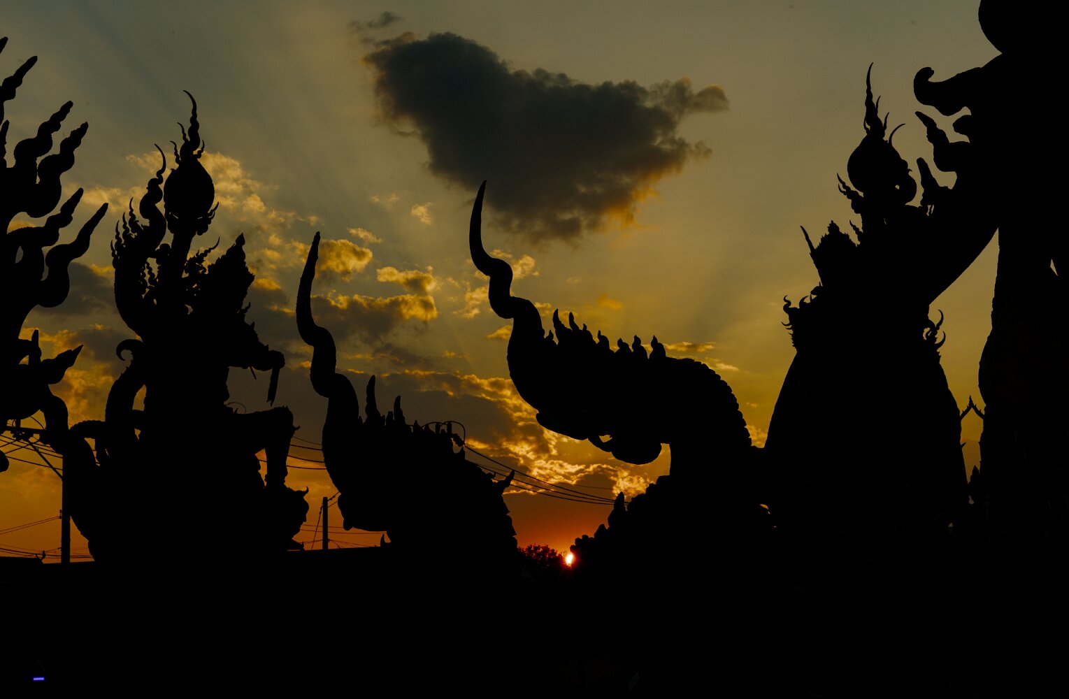 The psychedelic visual imagery of Wat Rong Suea Ten, also known as the Blue Temple, is the labor of another local folk artist, Phuttha Kabkaew, a disciple of Kositpitat.