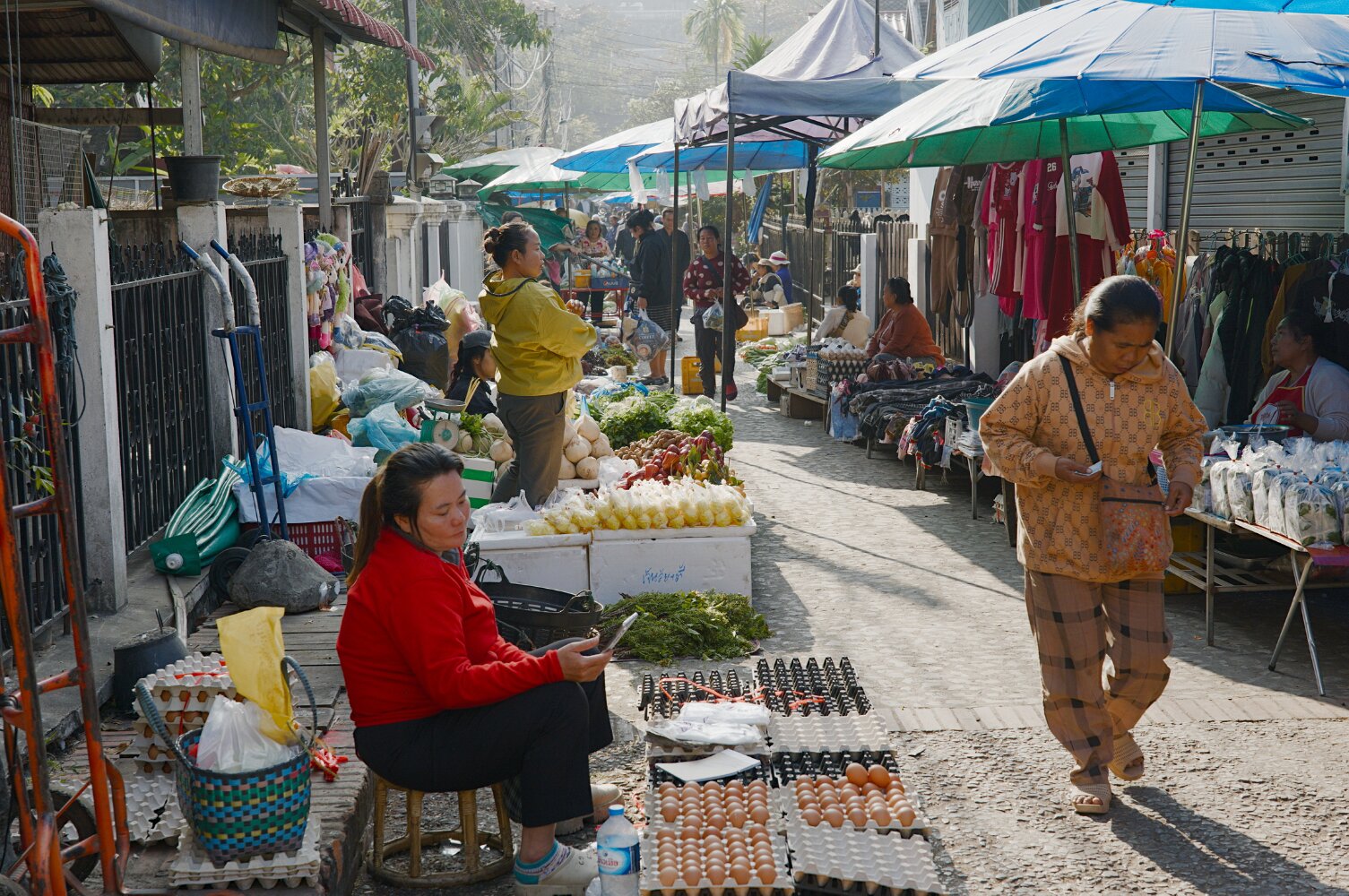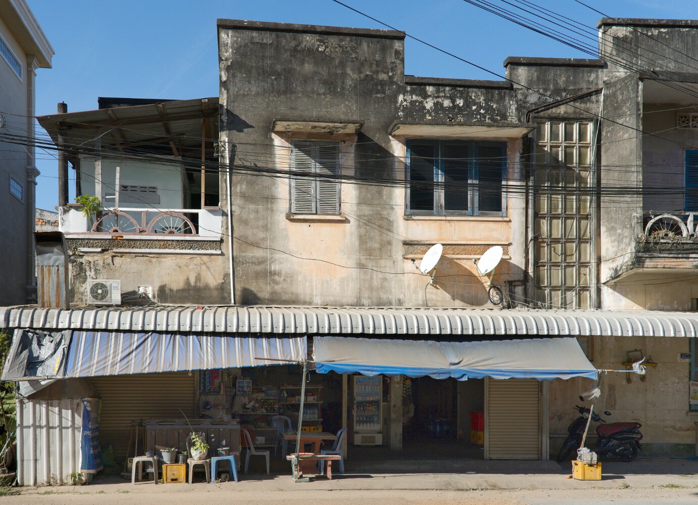Life happens on the street (or more precisely, the sidewalk, which is not intended for pedestrians): eating, parking, playing, working, gathering, selling, cooking, dealing, fixing a refrigerator.