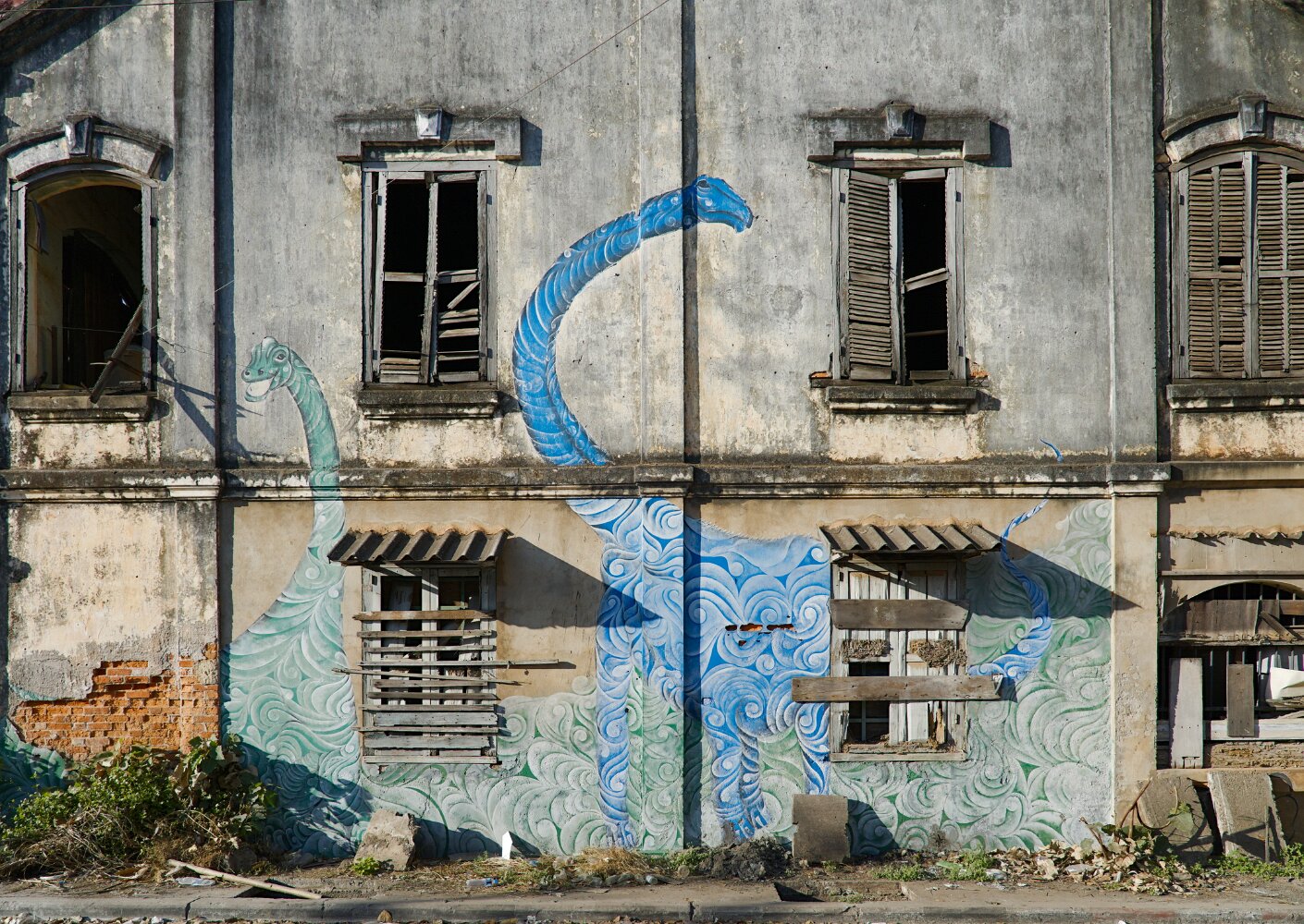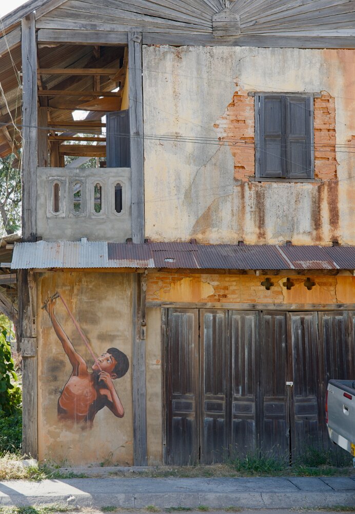 Many travelers skip Savannakhet but we are glad we did not, as we enjoyed getting lost in its streets with brutalist architecture, battered houses, and hidden pieces of street art. It was also one of the few places where English was not very useful in the night markets, making us go around several times before pointing out at what we chose to eat based on how it looked — I was happy with my choice; Autumn wasn't with hers.