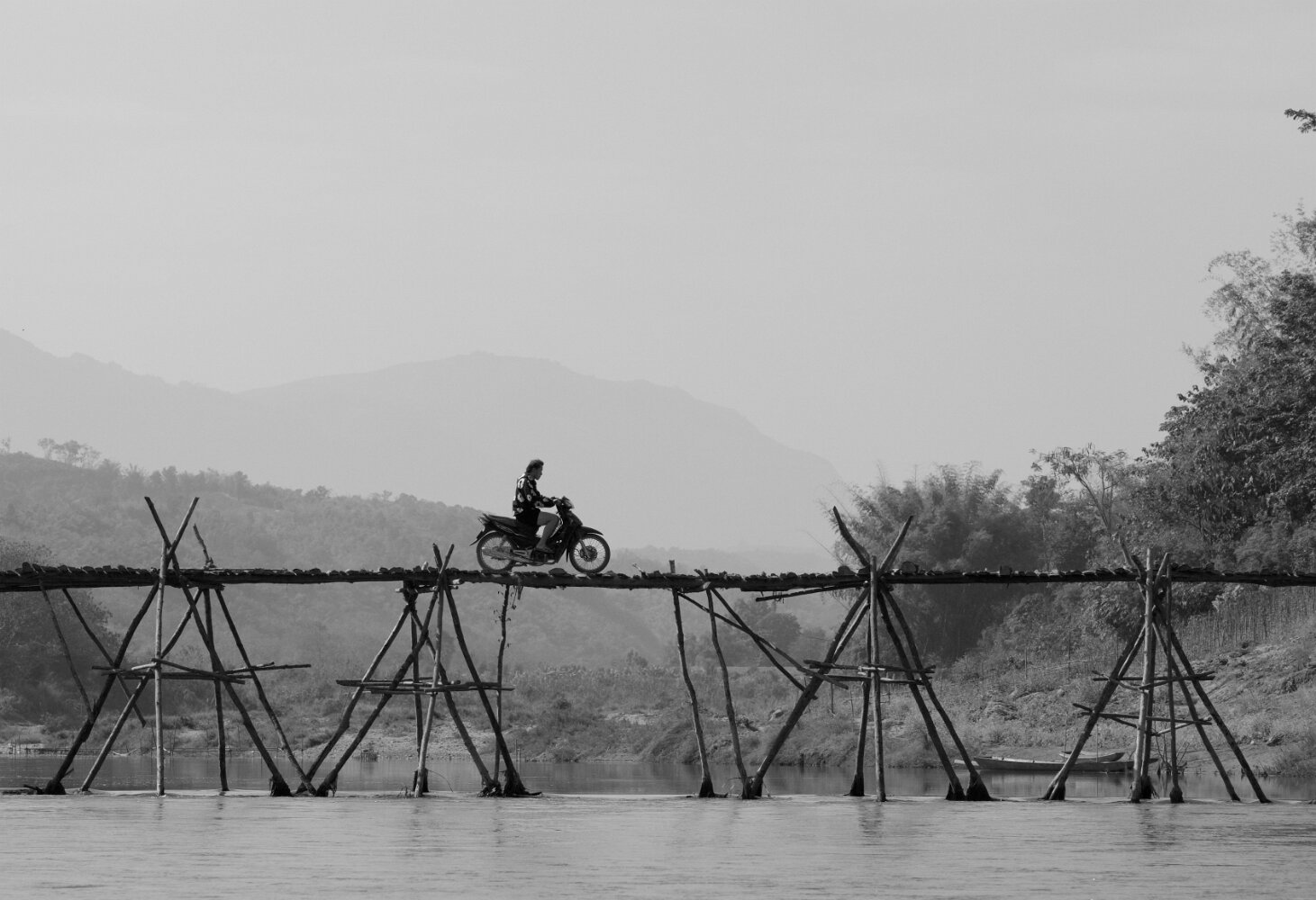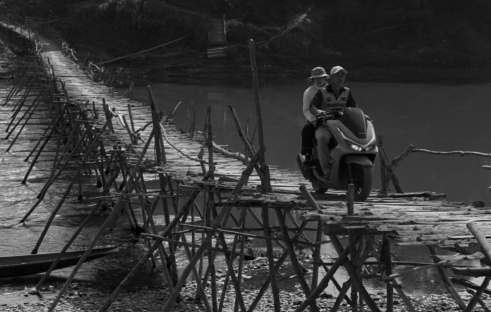 The bridge pictured here is taken by the river during the monsoons and rebuilt every year.