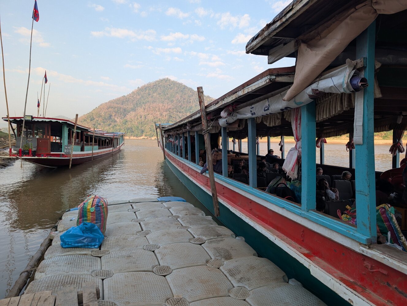 The local boats that navigate the Mekong River between Luang Prabang and Huay Xai, across the river from Thailand, provide an experience that feels taken from a chapter of García Marquez's magical realism. The journey takes two days: you take a boat to Pakbeng, spend the night there, and then take another boat to Huay Xai. Upstream it's about ten hours each day.